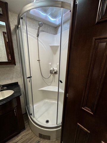 Spacious shower with glass door